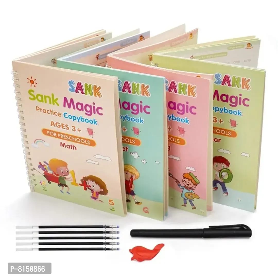 Miuline Sank Magic Practice Copybook, Number Tracing Book for Preschoolers with Pen, Magic Calligraphy Copybook Set Rewritable Notebook (4 Books + 10 Refill) (4 BOOKS + 10 REFILLS